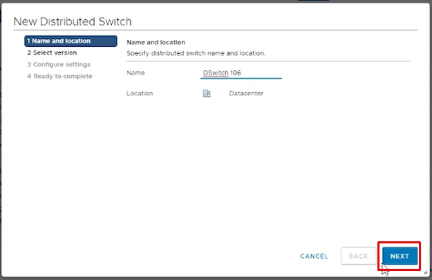 - ACTIONS \ Distributed Port Group \ New Distributed Port Group
